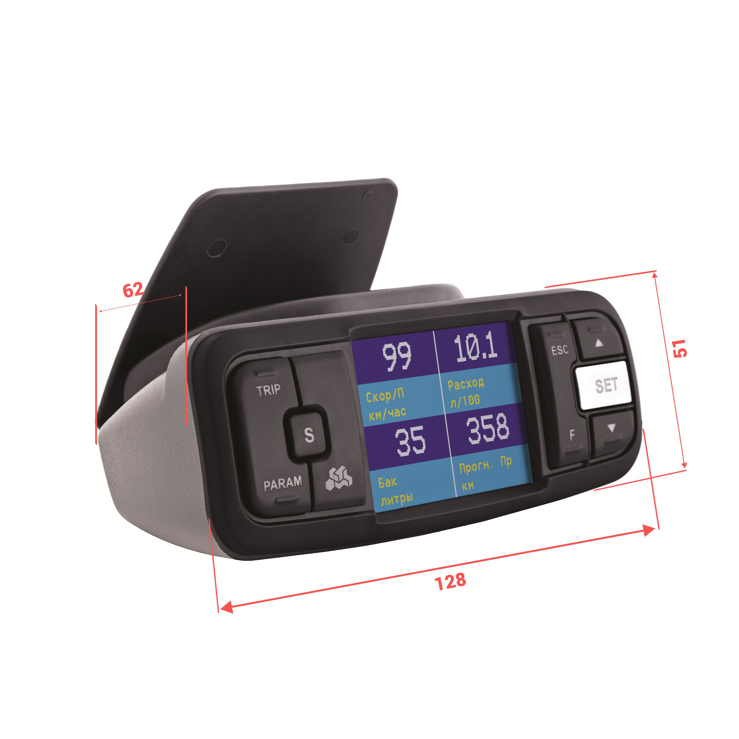 Бортовой компьютер может быть легко установлен на лобовое стекло или парприз ("торпедо") автомобиля. Крепление позволяет отрегулировать прибор в 2-х плоскостях и обеспечит нулевой уровень вибрации.